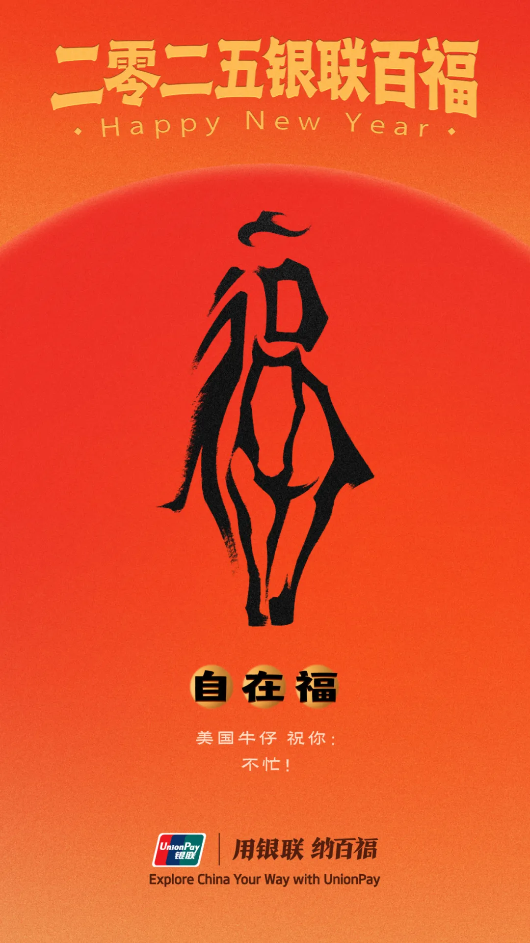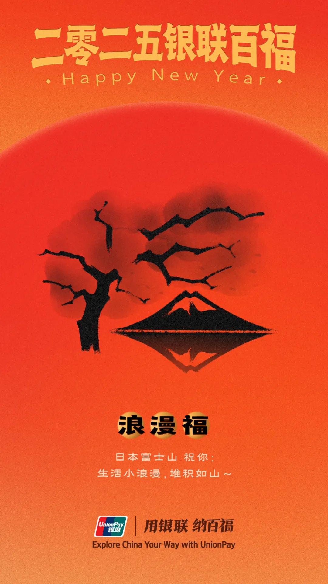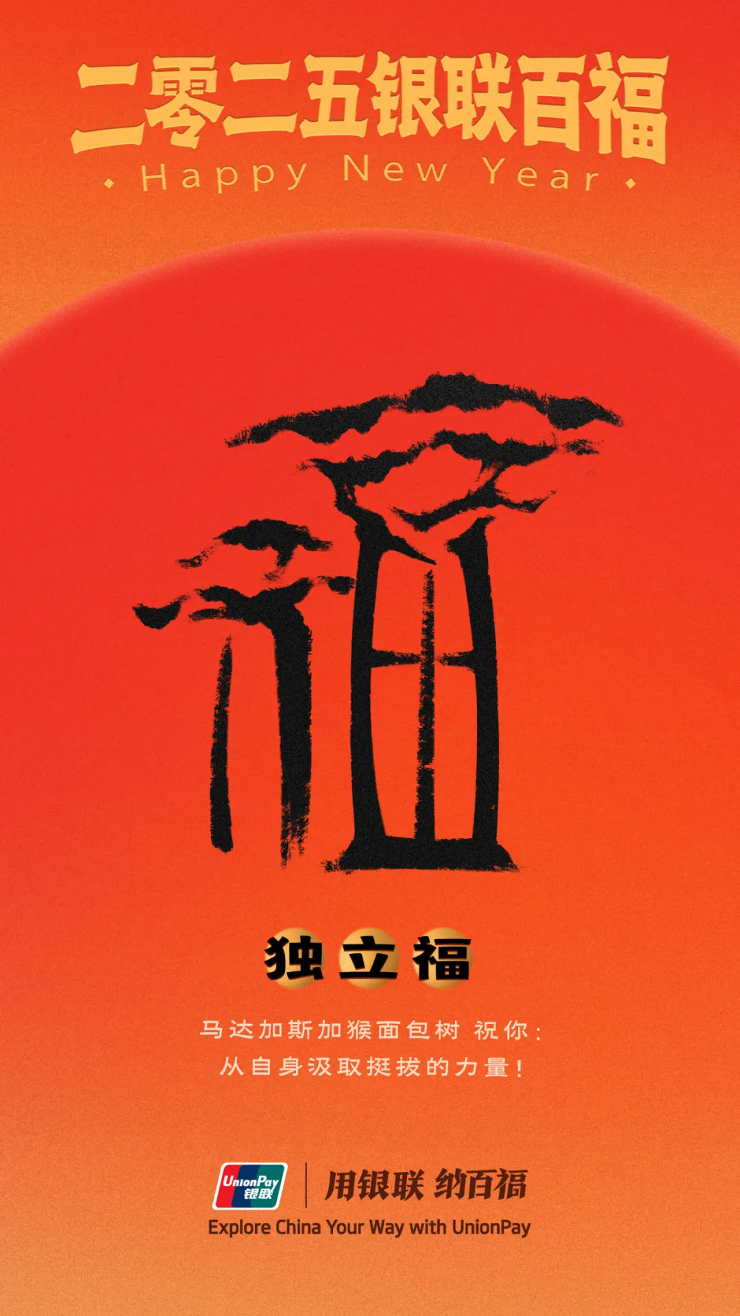 这份新年祝福出自2025银联百福。平安银行携手银联,将世界各地的“美好”象形,写成了福字,给行路匆匆的人们,送上了一句岁末新春、合乎时宜的温暖祝福。