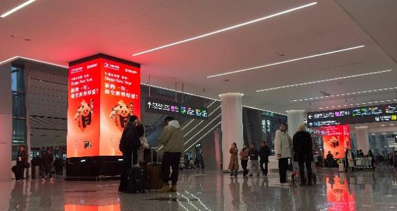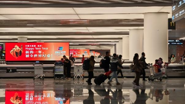 上海、北京、深圳、成都、哈尔滨、昆明等多个城市的机场、火车站和口岸,一份显眼的新年祝福,让匆忙赶路的人们,停下了脚步。
