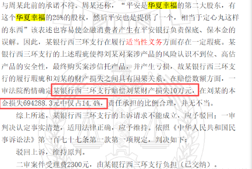 综合考虑产品风险属性、投资人过往经验、市场环境变化及银行销售行为的影响程度,法院最终判决: