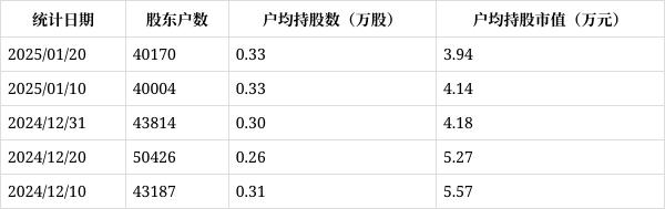 从1月22日公开信息显示,国华网安截至2025年1月20日公司股东户数为4.02万户,较上期(2025年1月10日)增加166户,增幅为0.41%,变化不大。
