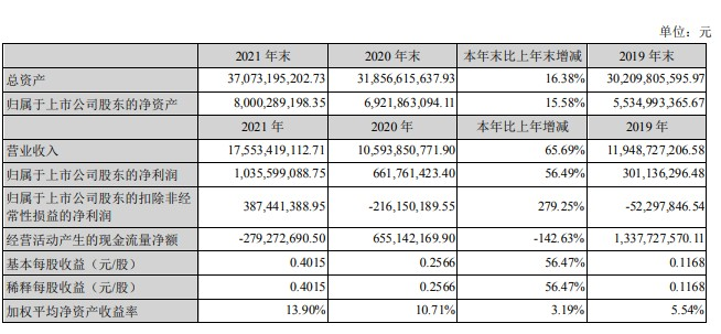 中国宝安(000009)公告,2021年净利润10.35亿元,同比增56.49%,拟10派0.35元。