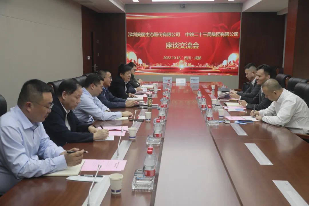 10月18日下午,集团公司与深圳美丽生态股份有限公司在四川成都签署战略合作协议。中铁二十三局集团党委书记、董事长肖红武,深圳美丽生态股份有限公司董事长陈飞霖出席活动,双方代表签署了协议。签约前,双方就深化战略合作进行了深入座谈交流,并达成广泛共识。