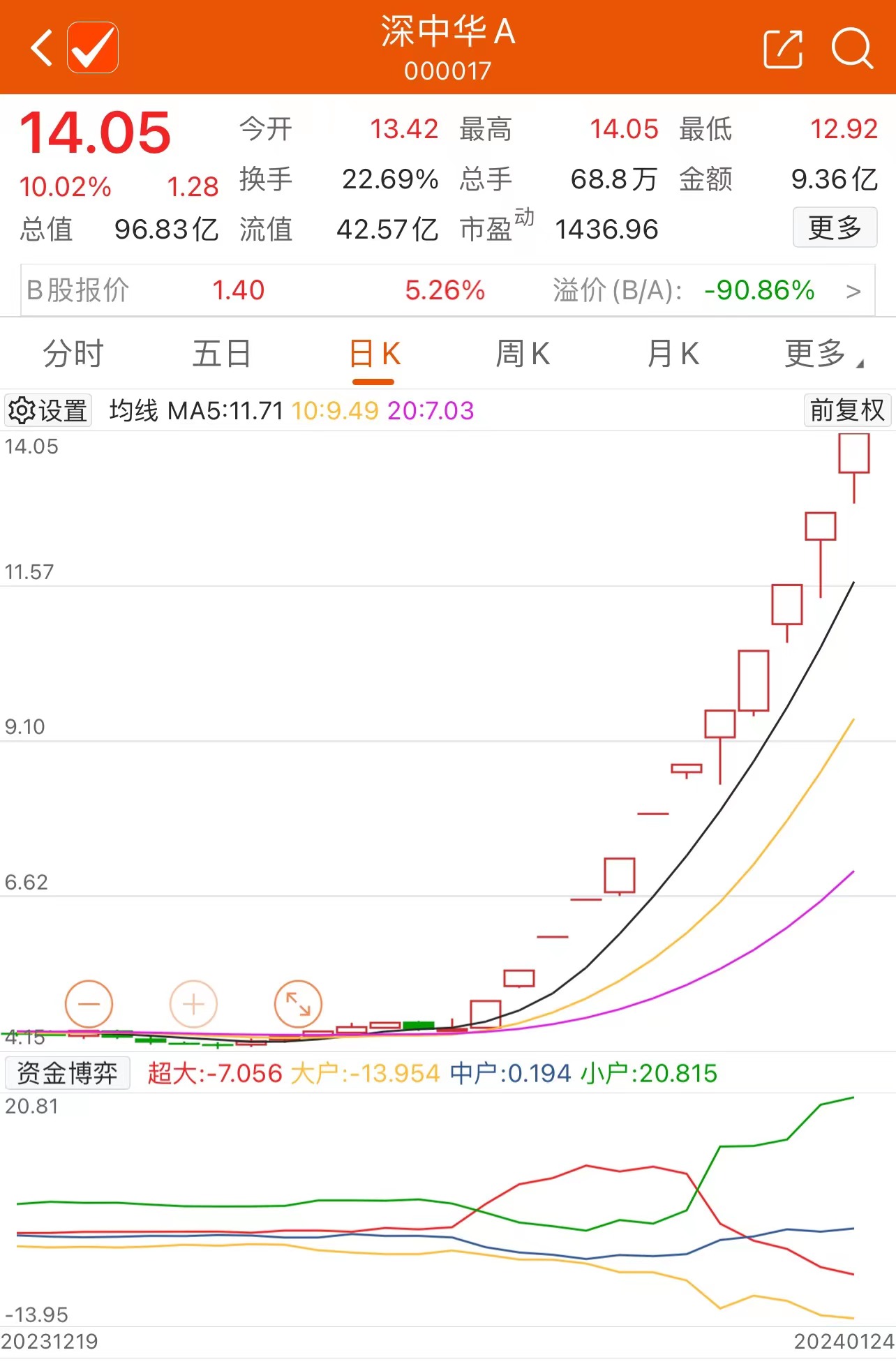 1月24日上午交易时段,深中华A再度涨停,走出12连板。1月23日晚,深中华A因股价异动再收关注函,深交所追问该公司基本面是否生变。