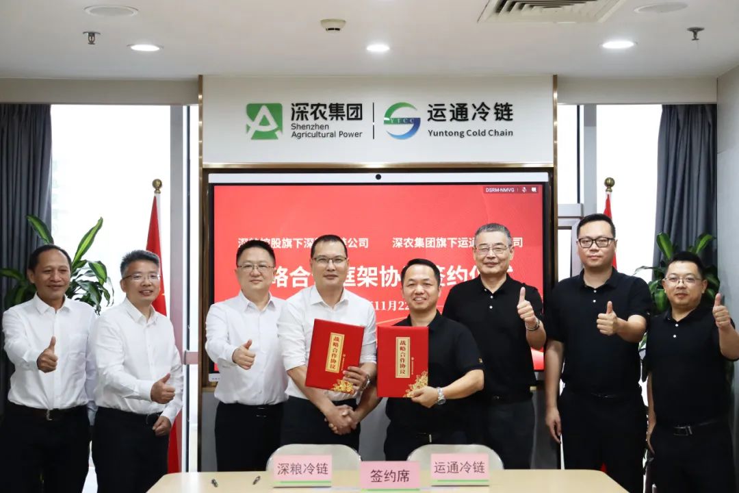 11月22日,深粮控股旗下深粮冷链公司与深农集团旗下运通冷链公司举行战略合作框架协议签约仪式,携手合作开展冷链业务联动发展。深粮控股副总经理沈骅、深农集团副总裁薛彤,以及双方相关部门、单位共同参与见证。