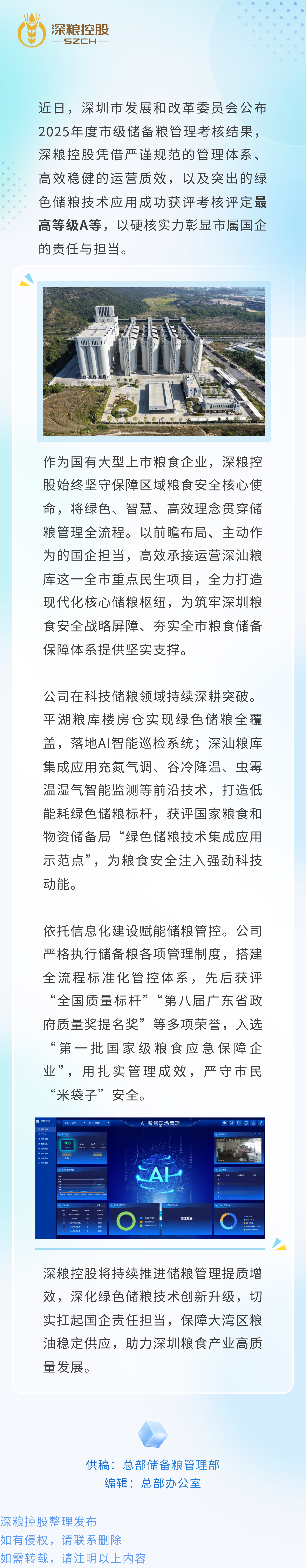 守粮有责 载誉前行 | 深粮控股获评市级储备粮管理考核A等企业