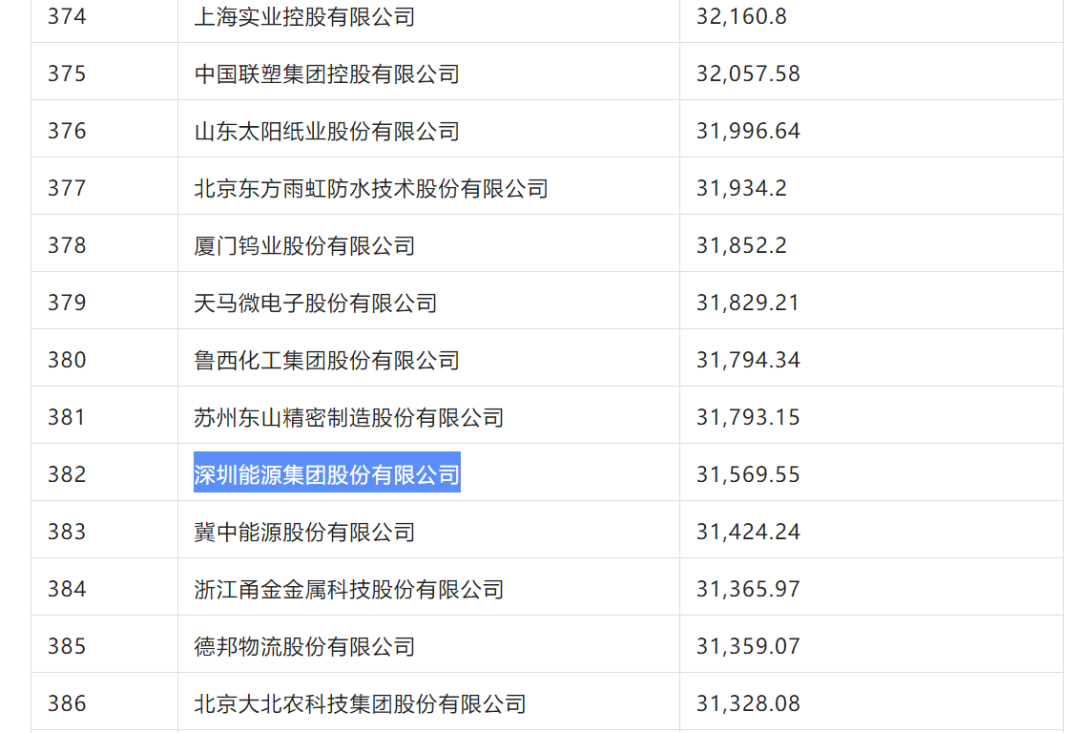 7月27日,财富中文网发布2022年《财富》中国500强排行榜,深圳能源集团入围该榜单,位列第382位。