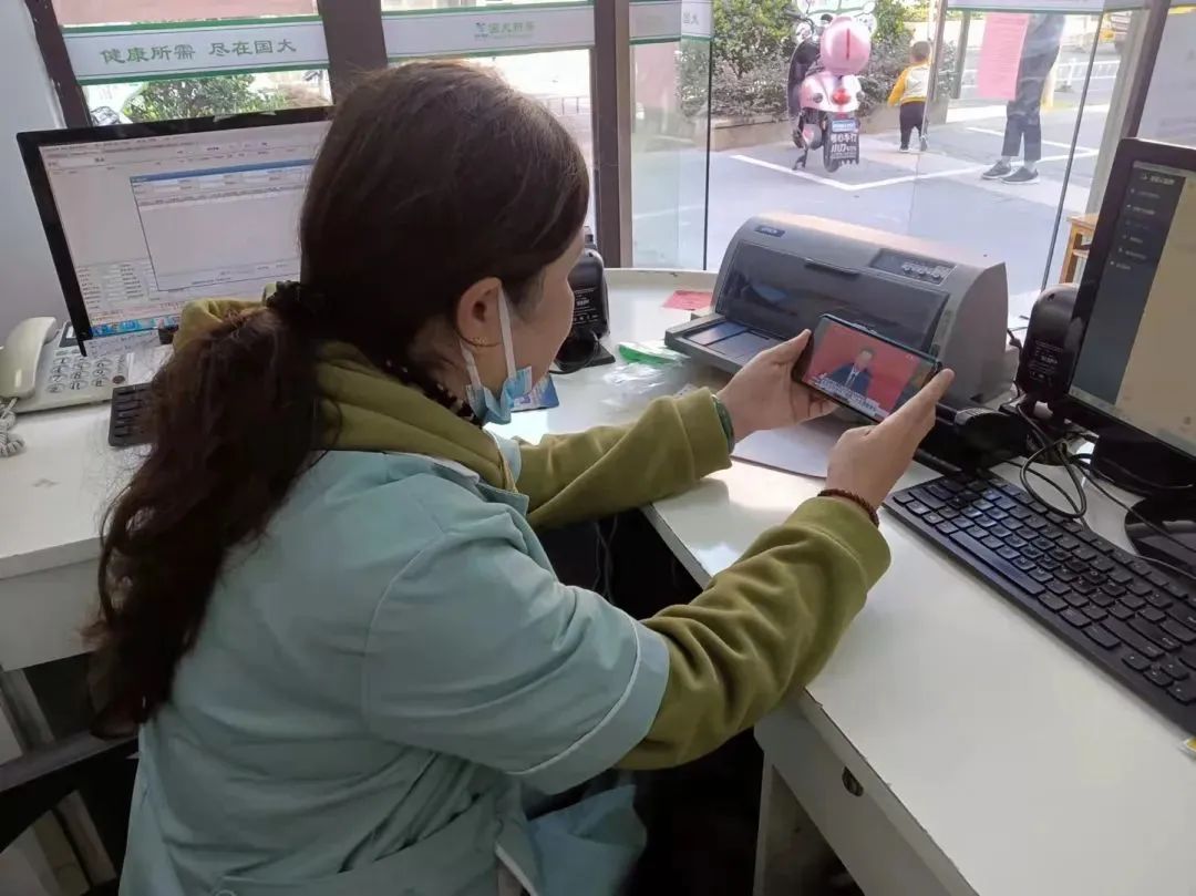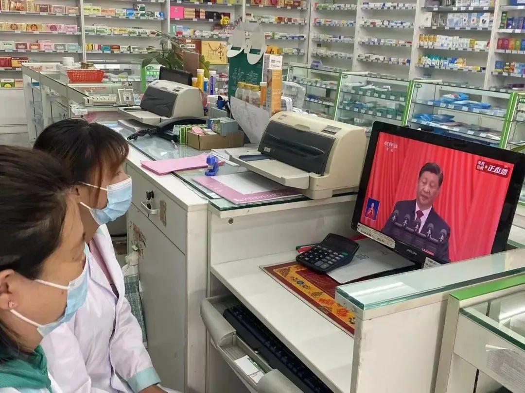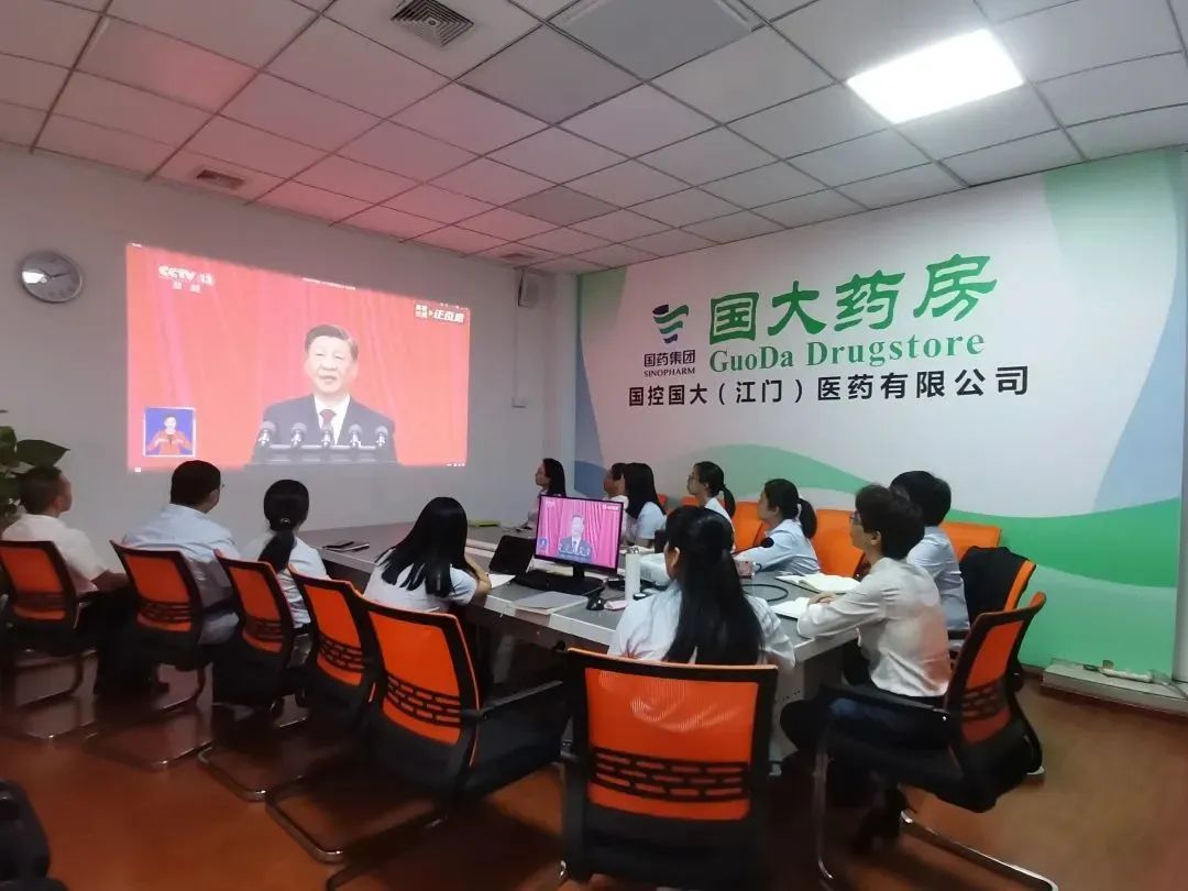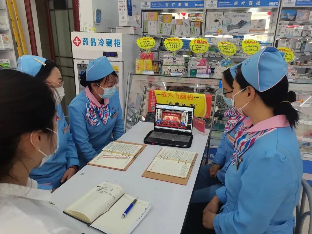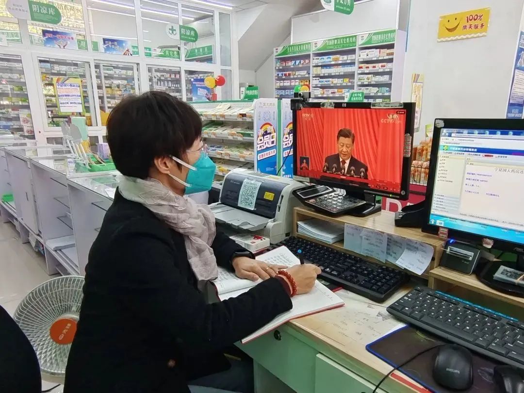 宁夏国大一线药房门店员工收看开幕会