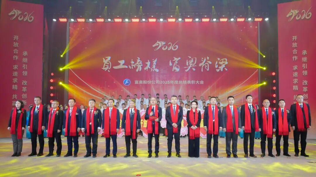 为表彰先进、鼓舞士气,进一步激励广大党员、干部、员工立足岗位、再创佳绩,1月26日,富奥股份公司2025年度总结表彰大会在东北亚金融中心召开。公司董事会成员,公司高管,所属合资公司外方经理代表,全体在长高级经理及在岗劳动模范代表,受表彰集体和个人代表,党员代表,职工代表参会。大会全面总结了2025年工作,集中表彰了一批先进集体和优秀个人。