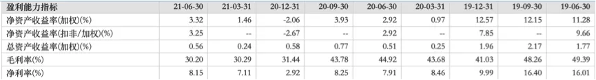 截止到2021年上半年,其毛利率尽管达到30.2%,但同比下降14.72个百分点,净利率则只有8.15%,同比微增0.24%。