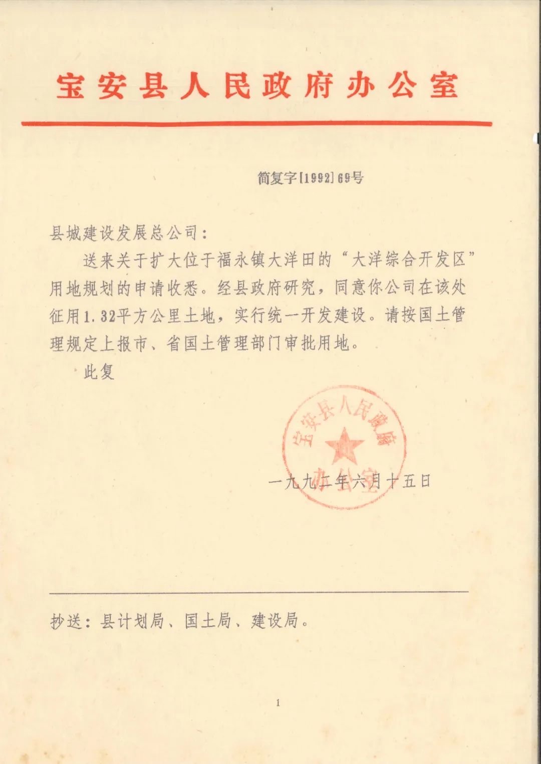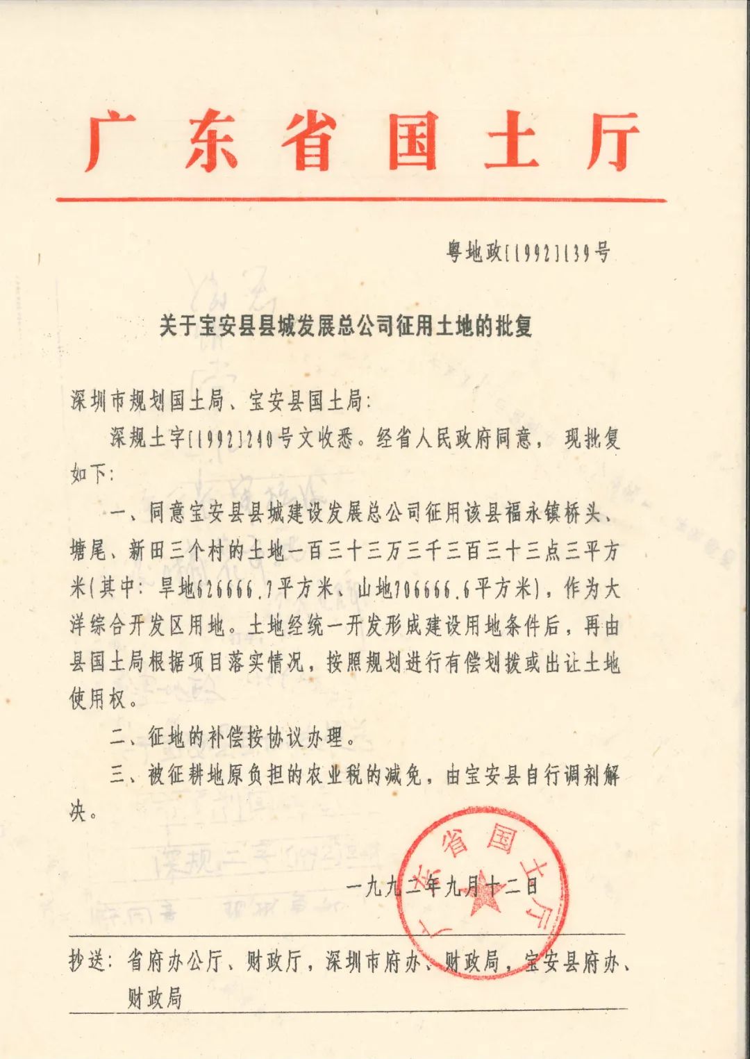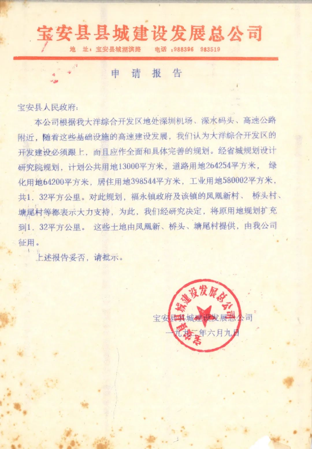宝安城建(中粮大悦城前身)关于征用福永桥头、塘尾、新田村土地的申请报告,
