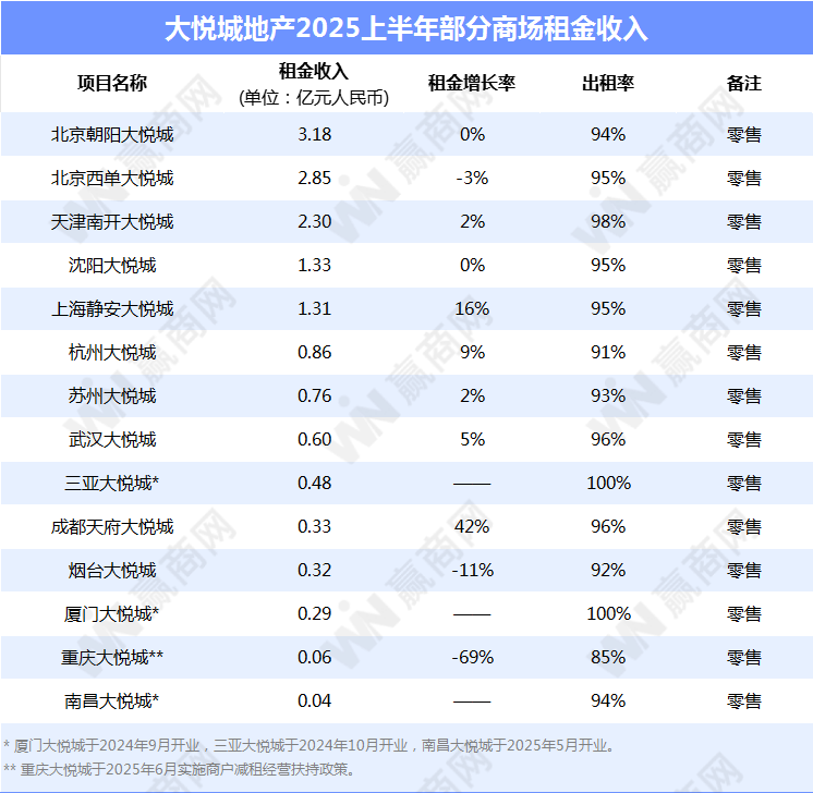 购物中心租金收入:104亿元,同比增长9.9%