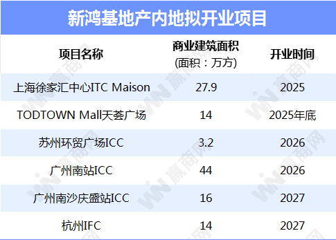 据赢商网不完全统计,新鸿基地产目前在内地布局6个新项目,并将于未来2-3年开业。