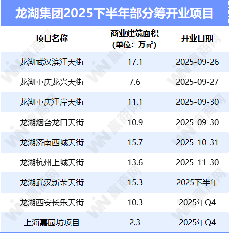 9月底将有4座天街集中开业,包括龙湖武汉滨江天街、龙湖重庆龙兴天街、龙湖重庆江岸天街和龙湖烟台龙口天街。而龙湖与开伦集团合作打造的上海嘉园坊(JoyFun)预计12月底正式开业,9月起各签约品牌将陆续进场装修,Aldi奥乐齐超市已确认入驻。