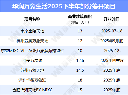 下半年,华润万象生活至少有7个新项目要开业