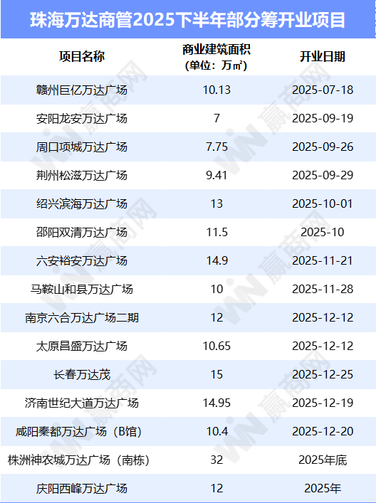 目标2025全年开出30座万达广场的珠海万达商管,上半年已开出5座万达广场,这也意味着下半年还需冲刺20+座万达广场开业,继续深耕下沉市场,或将覆盖庆阳、马鞍山、呼伦贝尔、乌鲁木齐等近20个城市。