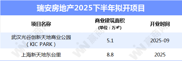 2025下半年,瑞安房地产将有2个新项目开业,包括与中信泰富地产联合打造的武汉光谷创新天地商业公园、新天地20年来最大体量商业综合体项目——上海新天地东台里。