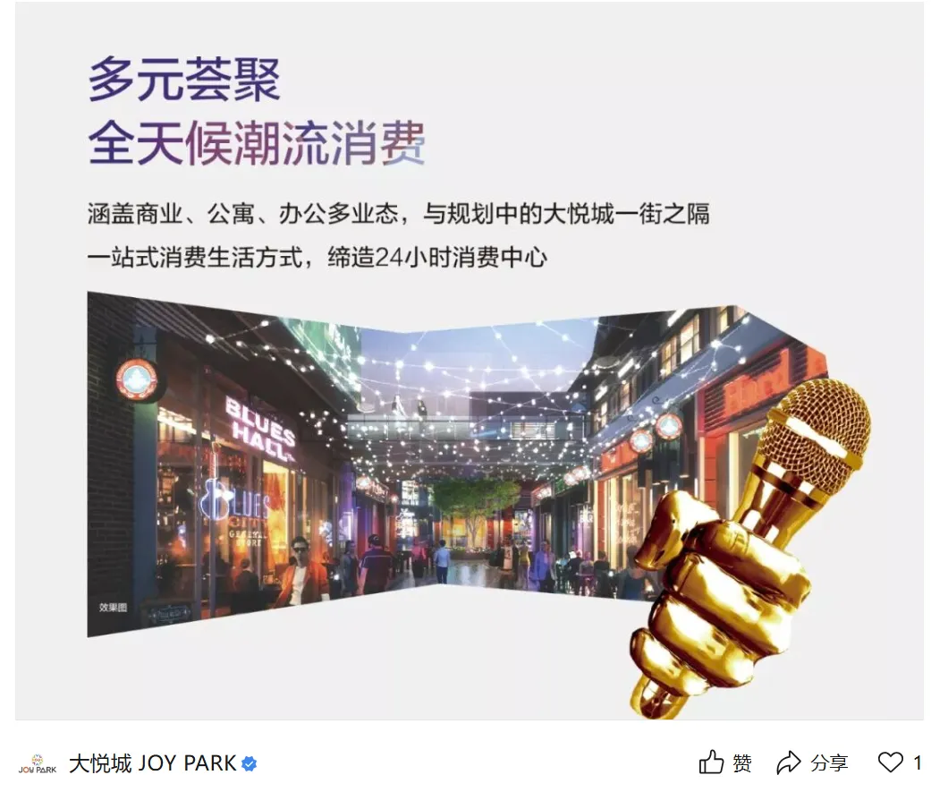整个项目的五宗地块几乎同时推进,于2018年6月率先启动建设工作,但此时,“ 大悦城 ”商业综合体中仍缺少最关键的一环,即盒子式大型购物中心。