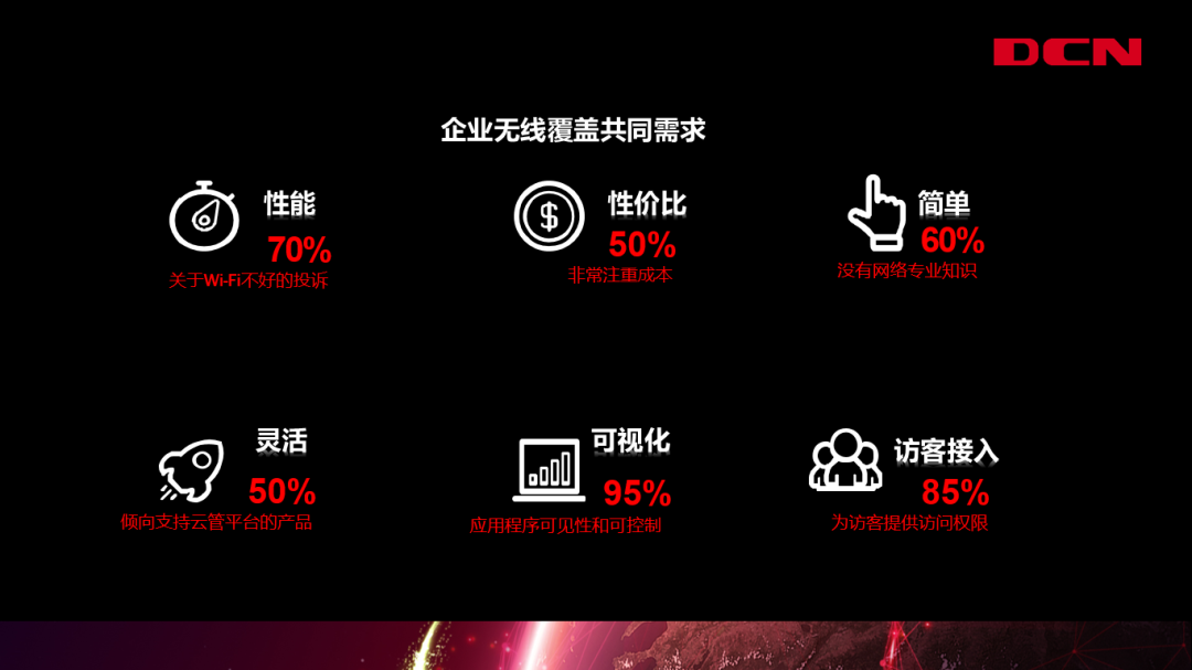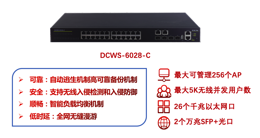 本次园区企业无线办公网络覆盖方案中,DCN无线产品提供众多优越、有价值的特性: