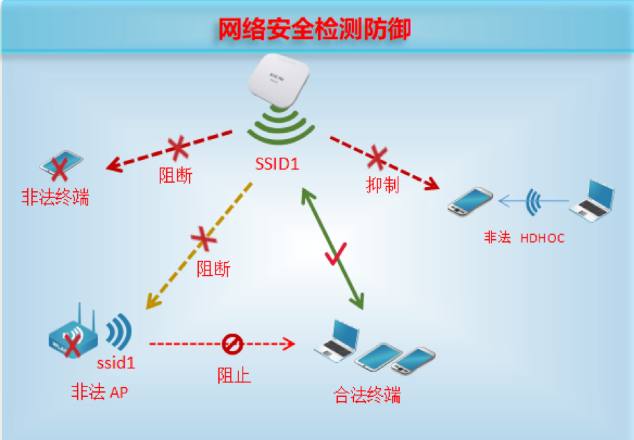 无线网络相比有线网络来说是空口传播,很容易被侵入,这会造成企业单位保密信息泄漏等问题。