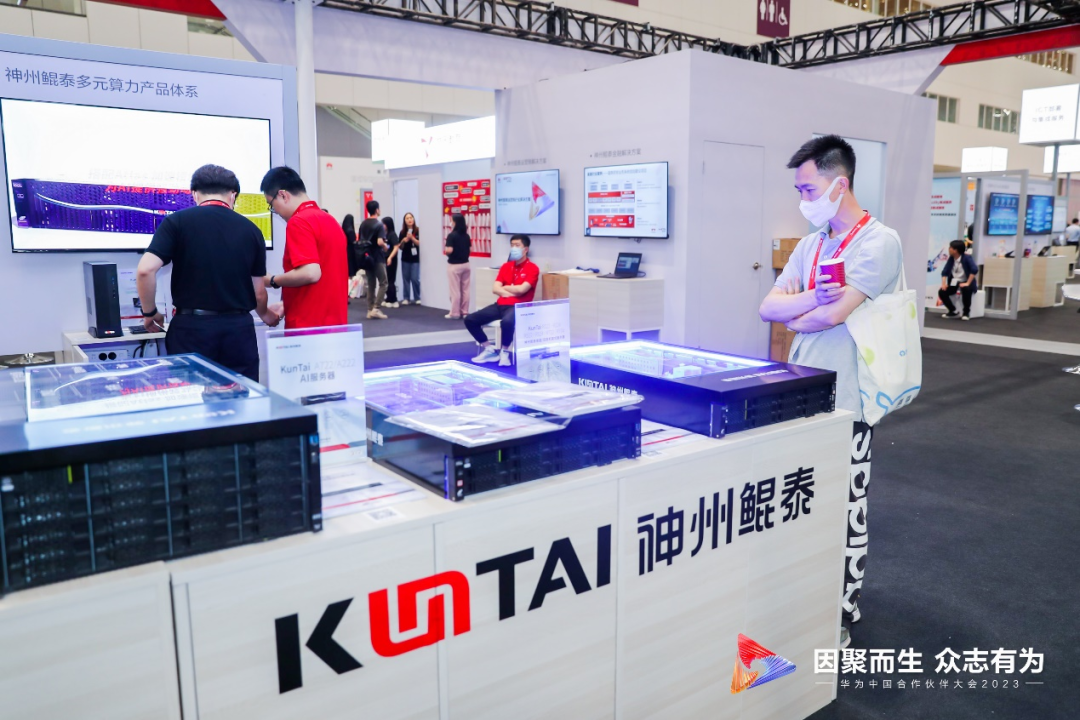 在基础设施领域及计算产业方面,神州数码是首批加入鲲鹏产业生态的企业,持续打造自主品牌“神州鲲泰”系列产品及解决方案,助力政企、金融、运营商、能源等众多行业数字化转型。以客户为中心,以应用场景为核心,展开产品、方案创新,持续打造行业标杆范例,联动产学研用坚定推动计算产业生态建设。今年以来,AIGC等数据模型应用持续火爆,算力作为基础设施资源已经成为行业共识,在本次大会上,神州数码在自身展区、“鲲鹏计算”展区、“昇腾AI”展区皆有产品展出,覆盖计算、人工智能、终端多个维度,以之衍生出丰富场景解决方案,为客户的创新业务提供强大动能。