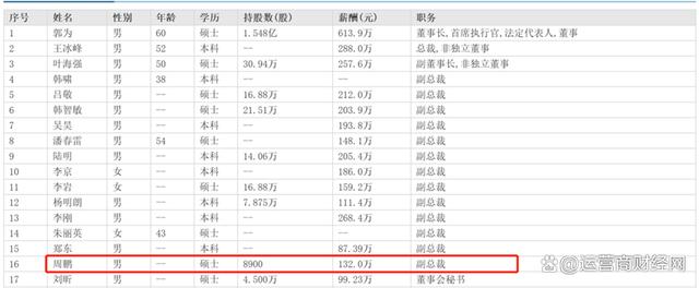 因此周鹏的薪酬应该是从正式任命开始算起,这么来看,周鹏从8月到12月,获得132万元也不算很低,郑东和周鹏一样,都是从8月正式上任的,而郑东只有87.39万元,看来后续周鹏的年薪要比郑东高出不少。