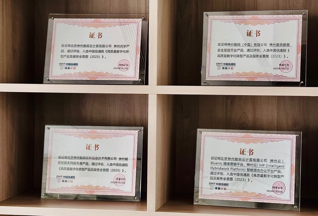 7月27日,2023数字生态发展大会暨中国信通院“铸基计划”年中会议在京成功举办。作为“筑基计划“的深度参与者,神州数码(000034.SZ)凭借对数云融合的前沿洞察、率先布局以及全栈数云服务交付能力,携旗下神州鲲泰智算系列服务器、神州问学、Bluenic精准营销平台、IHP智能混合办公平台、数据安全管控平台5个标杆产品,成功入选《高质量数字化转型产品及服务全景图(2023)》,上榜数据分析、人工智能、IT运营维护、技术开发、通用办公等多个细分板块,为“筑基计划”添砖加瓦。