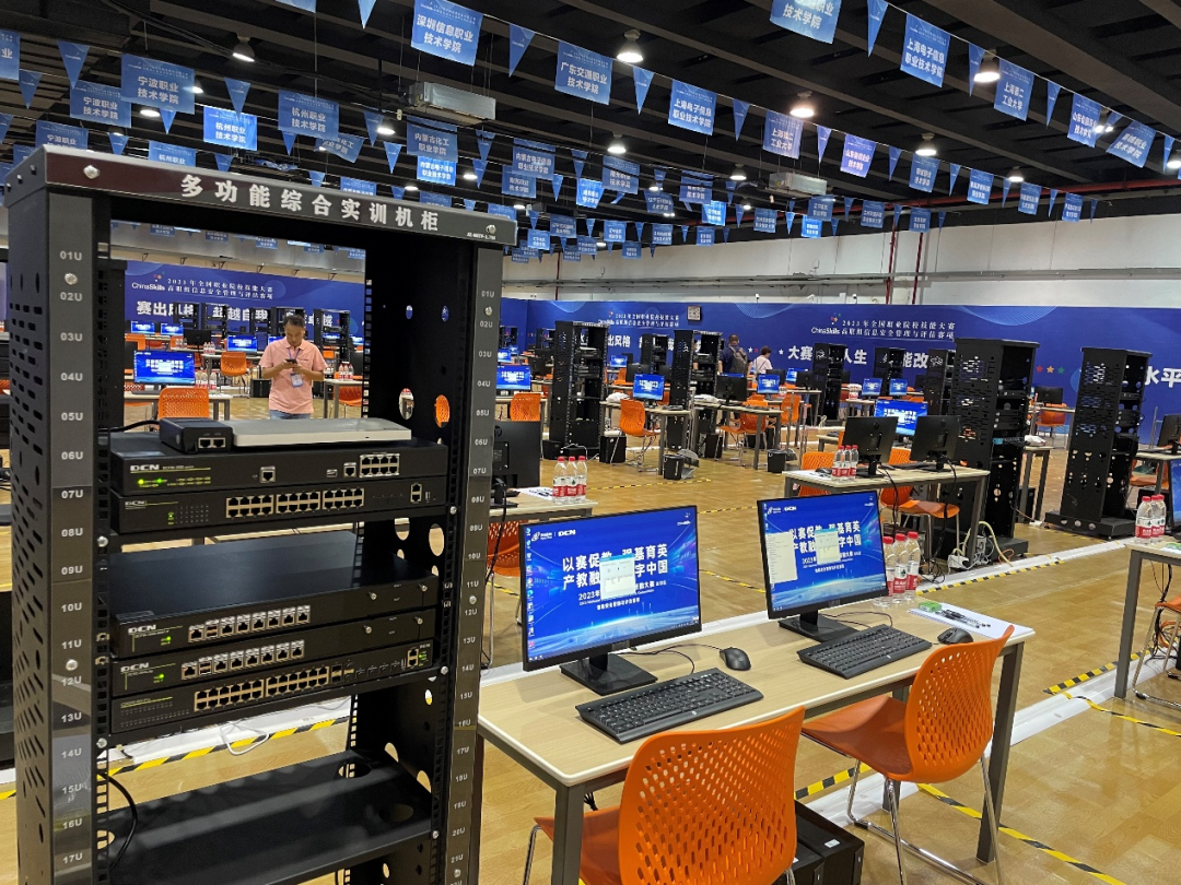 在本次大赛中,神州数码DCN主要提供三层交换机、多核防火墙、Web防火墙、网络日志系统、无线交换机、无线接入点、POE模块、堡垒服务器等网络产品。作为职教大赛十六年的合作伙伴,对大赛和职教行业有着深厚的了解和情谊。秉承“以赛促教、以赛促学”、“产教融合、校企合作”的理念和方式,神州数码DCN多年来持续在大赛资源转化和专业建设上加大投入,在数字时代推动数云融合产品及技术在职教行业的发展,以数字原生、云原生技术赋能中国职业教育,为职教行业提供值得信赖的职业教育全业务生态平台,培养更多的人才,为数字中国的建设打下更坚实的基础。