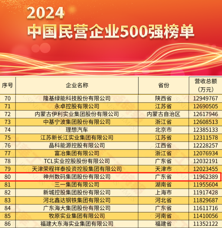在2024中国民营企业500强榜单中,神州数码凭借2023年卓越的经营业绩和突出的行业影响力,跻身第80位;同时,在2024中国服务业民营企业100强榜单中位列第20位,数字化技术实力和专业服务水准再获认可。