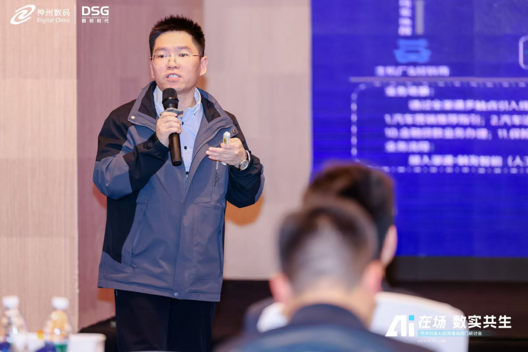 近日,由 神州数码 主办的“AI在场数实共生——汽车行业AI应用落地闭门研讨会”在上海成功举办。来自汽车主机厂、产业链伙伴及行业专家围绕AI在汽车研发、营销等关键场景的落地路径与实践价值展开深入交流。