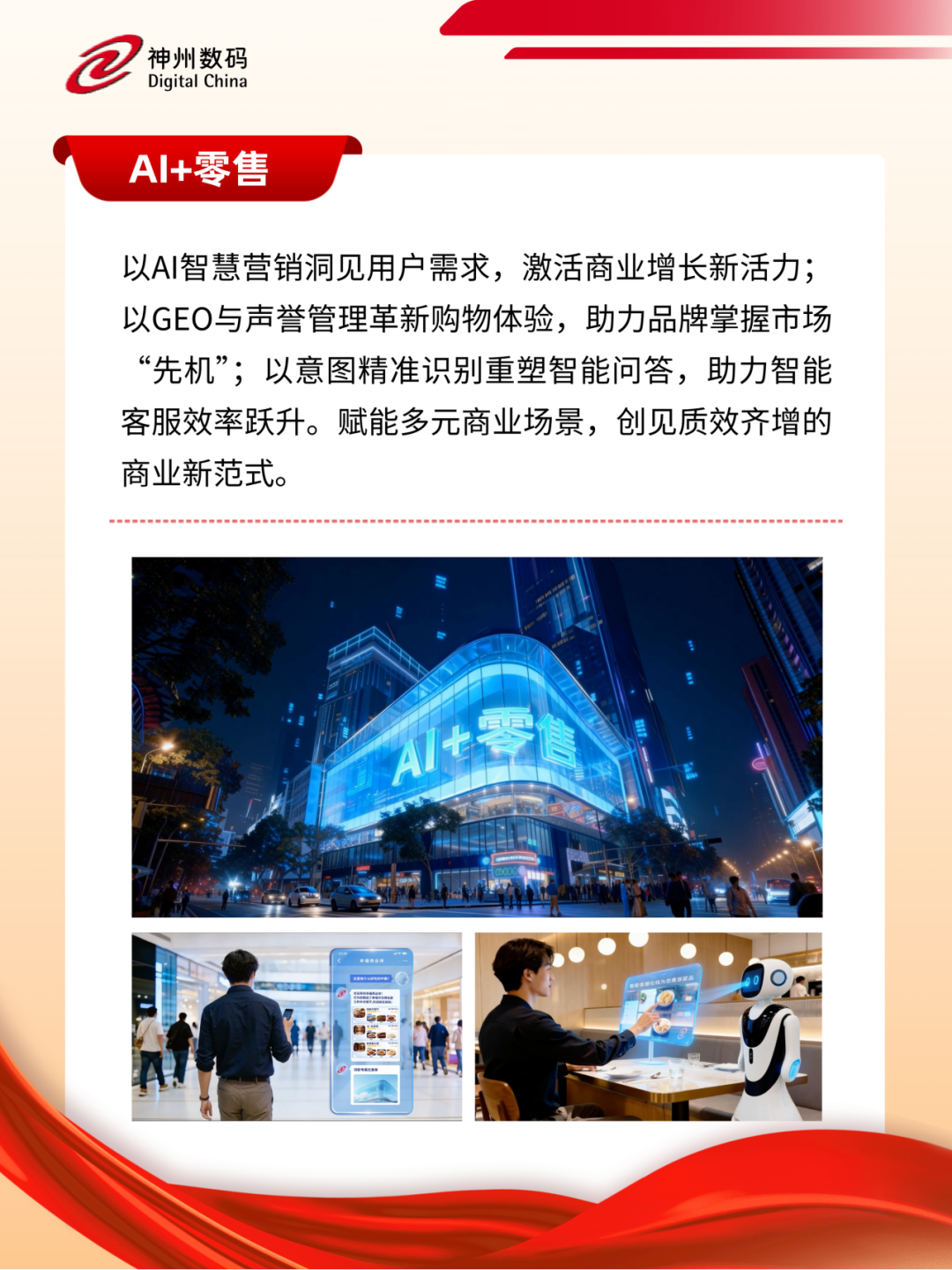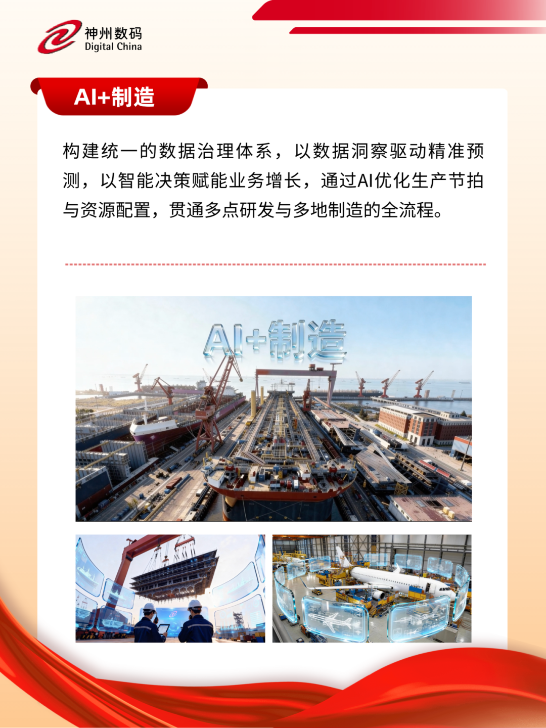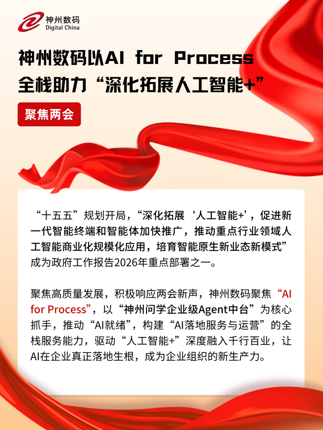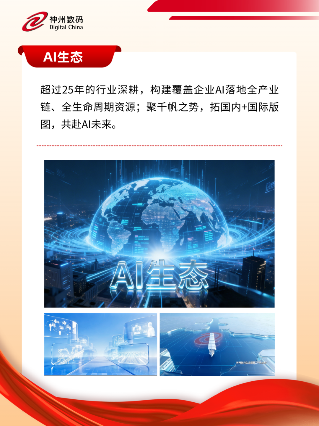 立足新起点,神州数码将持续提升全栈AI能力,进一步聚焦“AI for Process”,深入布局千行百业,通过AI重构企业业务流程,加速AI技术在企业场景中的规模化落地,助力企业构建AI时代的核心竞争力和新增长曲线,为发展新质生产力、深化拓展“人工智能+”、加速智能体应用推广、推动重点行业AI商业化规模化应用贡献积极力量。