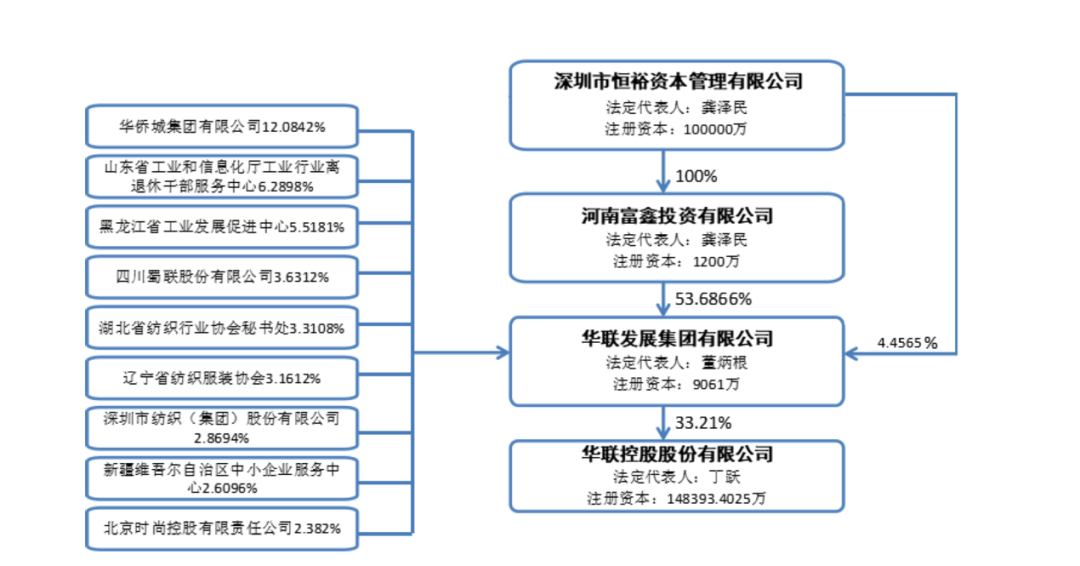 几番腾挪之后,不考虑华侨城手中股份,恒裕资本与华联发展集团之间的股权结构如下: