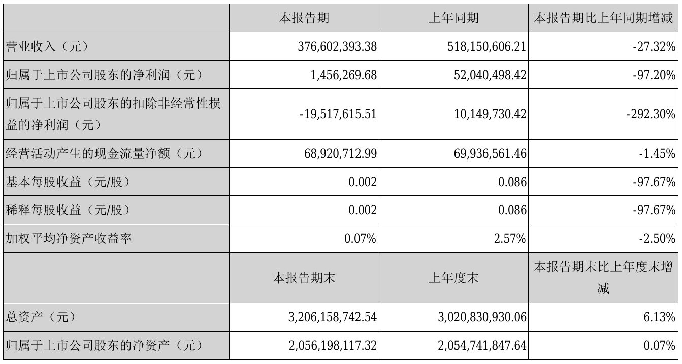 8月19日,深南电A(000037)近日发布2021年半年度报告,报告期内营业收入376,602,393.38元,同比减少27.32%;净利1,456,269.68元,同比净利减少97.20%。