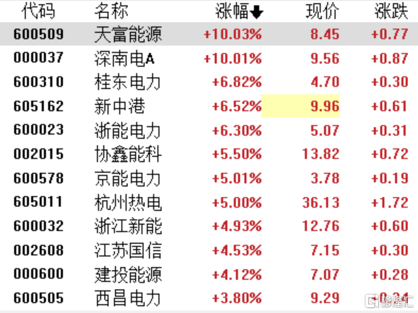 在此极端高温天气之下,居民们的电力需求攀升,也影响了电力板块。截至发稿,天富能源、深南电A涨停,桂东电力、新中港、浙能电力涨超6%,协鑫能科、京能电力涨超5%。