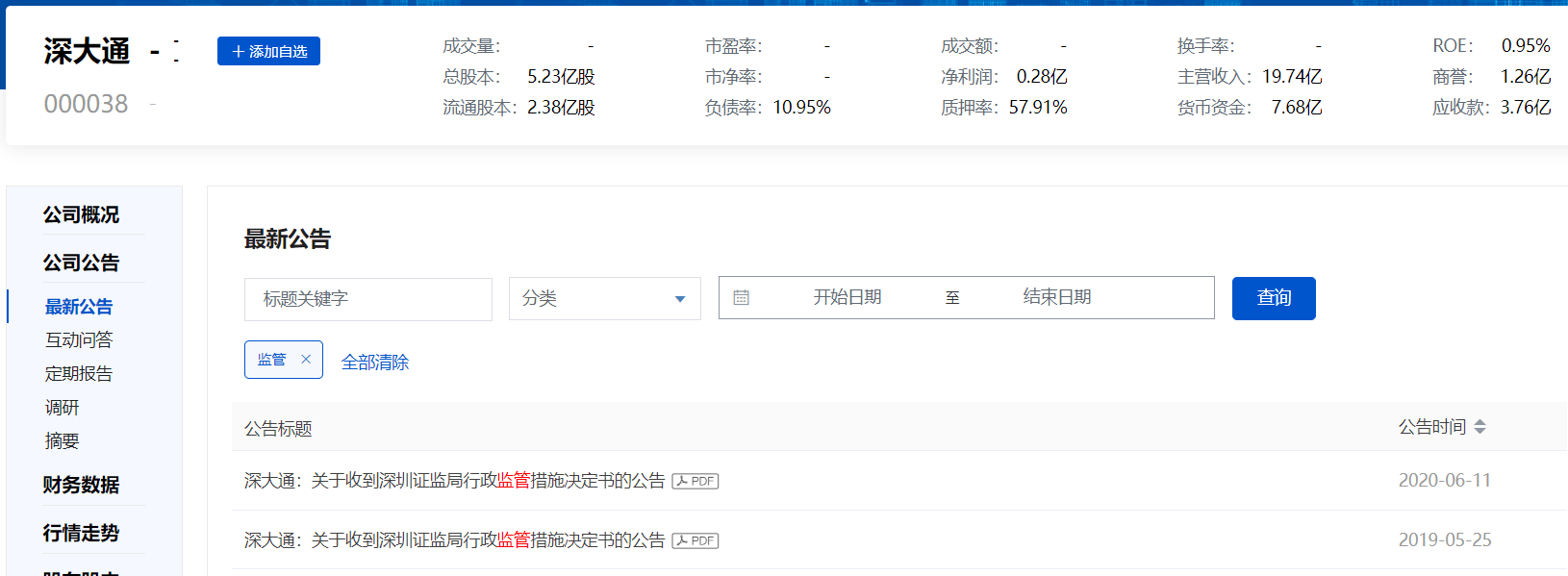 查询深大通的往期公告,自2019年至今,两次收到深圳监管局的行政监管措施决定书,其中一次就是因为公司存在着信息披露不规范、治理不健全等问题。可见,深大通出现信披问题已不是第一次。