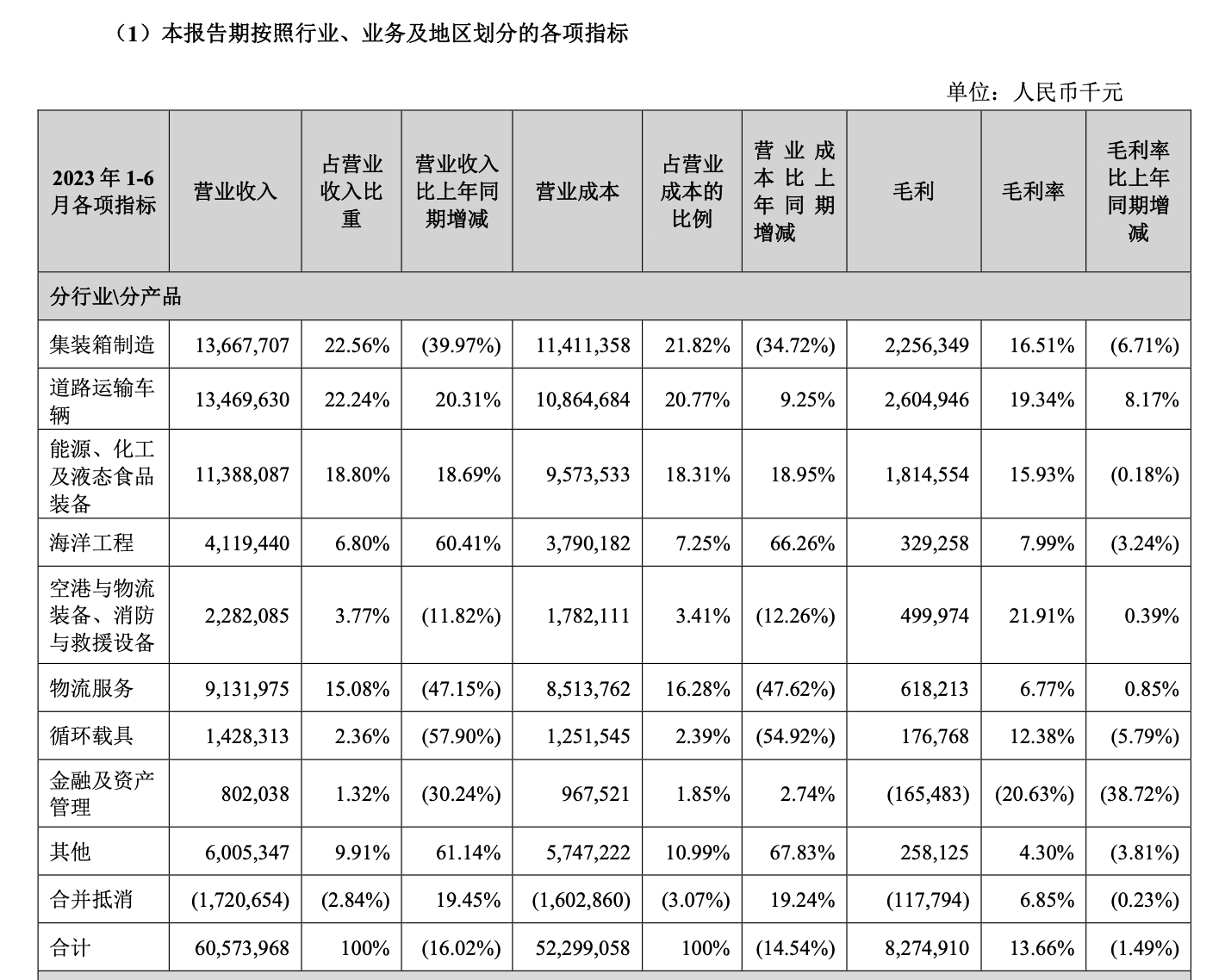 上半年集装箱制造业务净利降超七成,中集车辆净利创新高,能源领域业绩相对亮眼