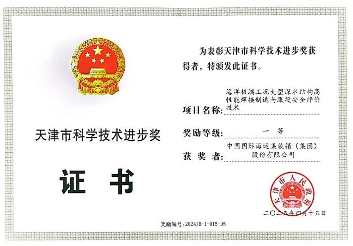 近日,中集集团与天津大学、华南理工大学、北京石油化工学院、海洋石油工程股份有限公司联合申报的“应用于海洋极端工况高性能焊接与评价”项目,斩获2024年度天津市科学技术进步奖一等奖和2024年中国产学研合作促进会科技创新成果一等奖。