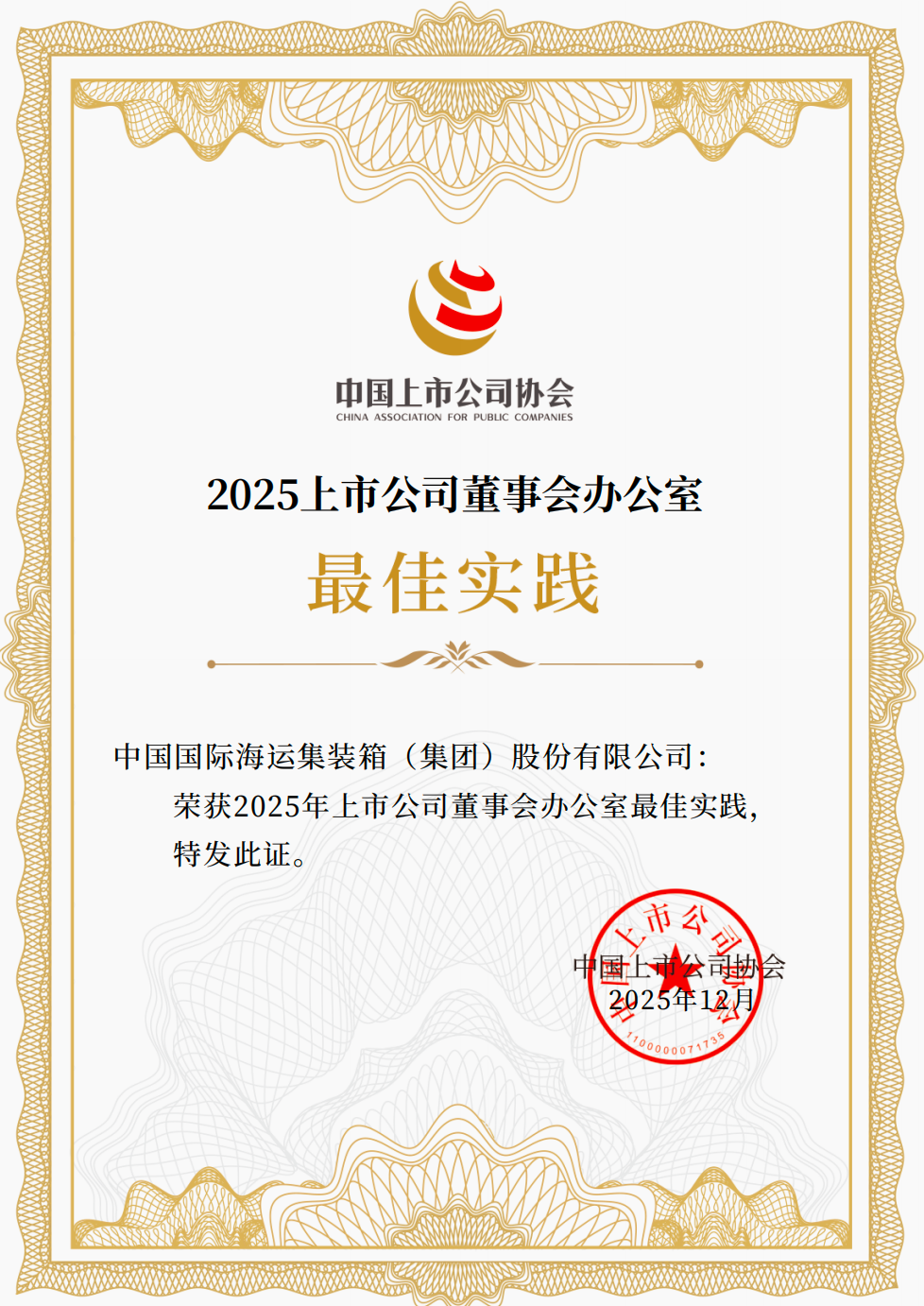 12月3日, 中国上市公司协会 发布“上市公司董办最佳实践案例征集活动”结果。 中集集团 再度入选“2025上市公司董办最佳实践案例”,这也是该活动连续开展五年以来, 中集集团 连续第五年获此殊荣。
