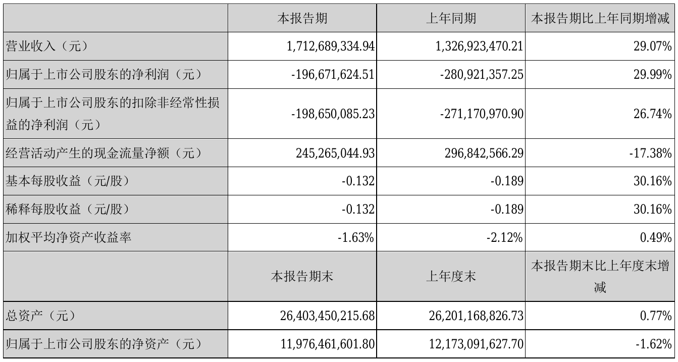 挖贝网8月29日,东旭蓝天(000040)近日发布2021年半年度报告,报告期内营业收入1,712,689,334.94元,同比增加29.07%;亏损196,671,624.51元,同比亏损减少29.99%。