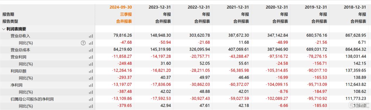 公司2024年净利润预亏3亿至5亿元,若叠加资金占用问题全额计提坏账,全年亏损或扩大至96亿元,导致净资产大幅缩水。2019年至2023年,公司已累计亏损超30亿元,新能源业务收入连续下滑,2024年前三季度营收同比腰斩至7.98亿元。