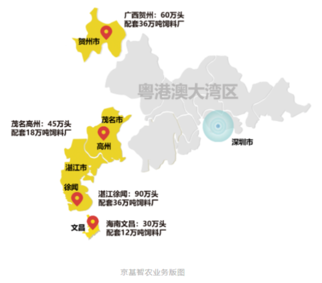 自2019年确定战略转型以来,京基智农聚焦生猪养殖业务,陆续在广东省及周边省份建设繁殖育肥一体化楼房猪场,布局产能超200万头,产品主要供应以深圳为主的粤港澳大湾区市场。