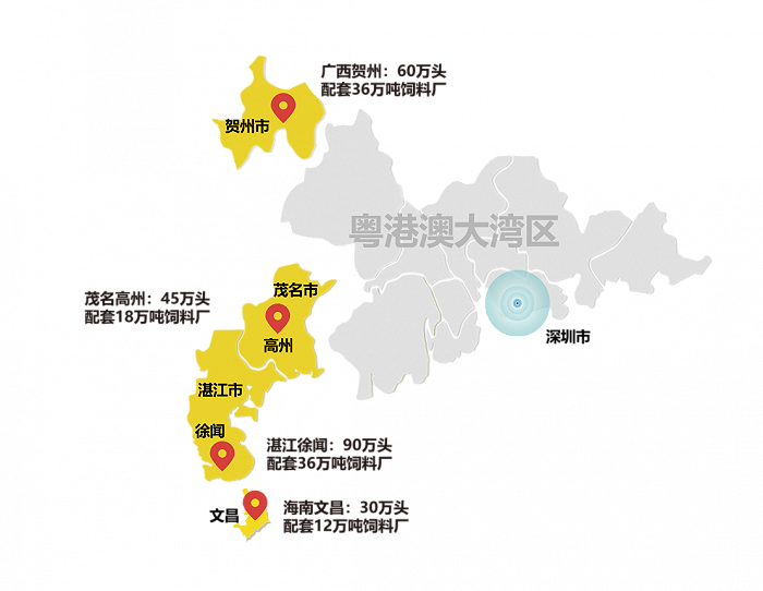 地处粤港湾大湾区核心辐射区,京基智农的项目进展飞速。至2021年末,徐闻、高州、文昌及贺州一期项目均实现引种投产,全年销售生猪13.22万头。目前,最早投产的徐闻项目现已成长为出栏最大的养殖基地;此外,高州项目(30万头)于2021年底开始满产满销,贺州项目二期(30万头)也在2022年9月开始投产。