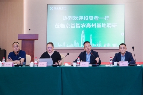 京基智农高州项目是京基智农首个立体聚落式楼宇养殖项目,投资者通过参观调研高州项目现代化楼房猪舍、全套环保系统以及配建饲料厂,对京基智农“6750自繁自养一体化”养殖模式、“红橙黄绿”生物安全四色防控体系、降本增效举措、环境友好型发展路径以及乡村振兴行动等情况作了全方位了解。