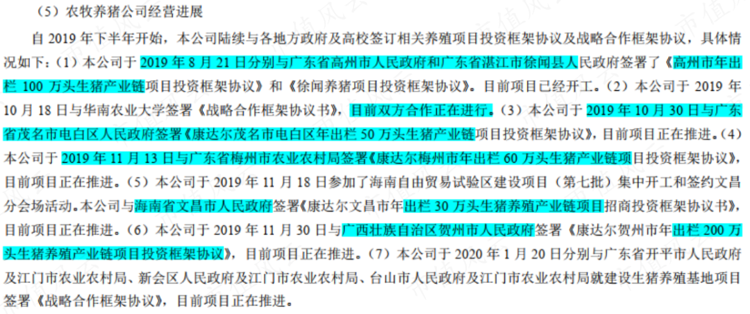 但如果沿着老路能走通,康达尔之前也不会因为亏损被连续ST。于是陈老板在2019年提出聚焦生猪养殖,聚焦的意思是京基智农之前也从事养猪业务。