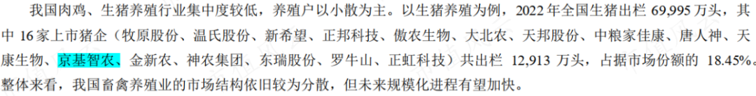 6月底,牧原股份能繁母猪303.2万头,是京基智农的近30倍,生猪养殖产能超过7,800万头/年,预计2023年出栏生猪6,500万头-7,100万头。