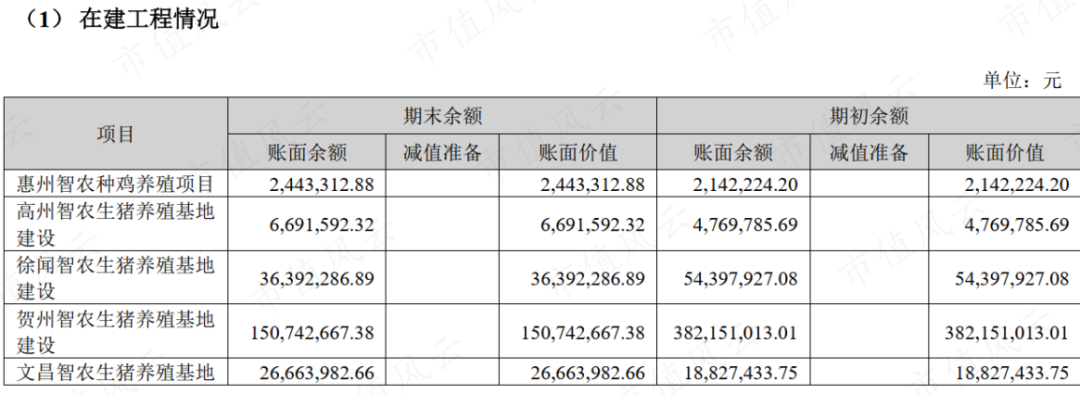 即使经历了正邦的破产危机,破产去产能的现象也没有发生。而且,无论是牧原股份还是京基智农,账面仍有大量的在建猪场。