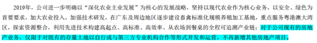 陈老板在接手后京基智农就明确表示,“对于公司现有的房地产业务,仅限于对既有的存量土地以自行或与第三方专业机构合作等形式开发和运营,不再新增其他房地产项目。”