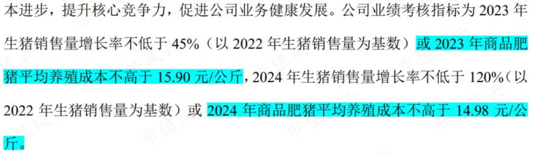在刚刚发布的限制性股票激励草案中,京基智农考核目标是2023年商品猪养殖成本不高于15.90元/Kg,2024年不高于14.98元/Kg。