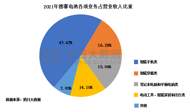 德赛电池靠手机电池业务起家,目前其业务表现并不理想。由于手机市场消费疲软,2021年公司的手机电池业务收入继续下滑,同比减少7.8%。