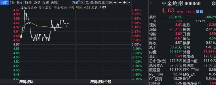 9月9日开盘,中金岭南微涨。截止发稿,报4.63元/股,涨1.31%。