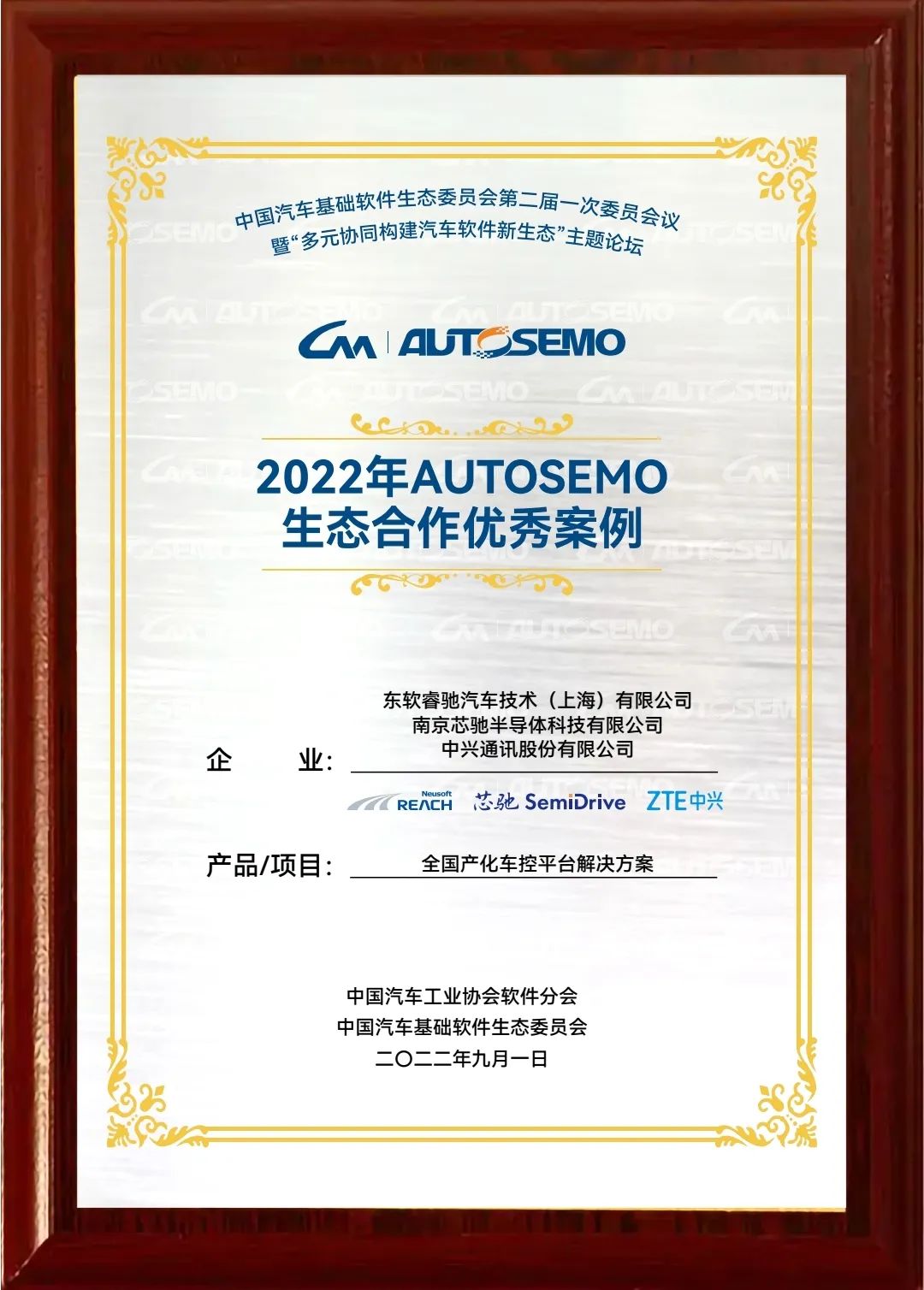 近期,中国汽车基础软件生态委员会(AUTOSEMO)第二届一次委员会暨“多元协同构建汽车软件新生态”主题论坛在南京召开。中兴通讯与芯驰科技、东软睿驰联合打造的全国产化车控平台解决方案荣获“2022年AUTOSEMO生态合作优秀案例”,三方的合作模式代表了国产化底层技术链条的典范,是行业内首例国产芯+国产软的范式应用。同时,中兴通讯高实时性、高确定性、和高安全性的双内核智能驾驶操作系统平台荣获“2022年AUTOSEMO创新产品优秀案例”。